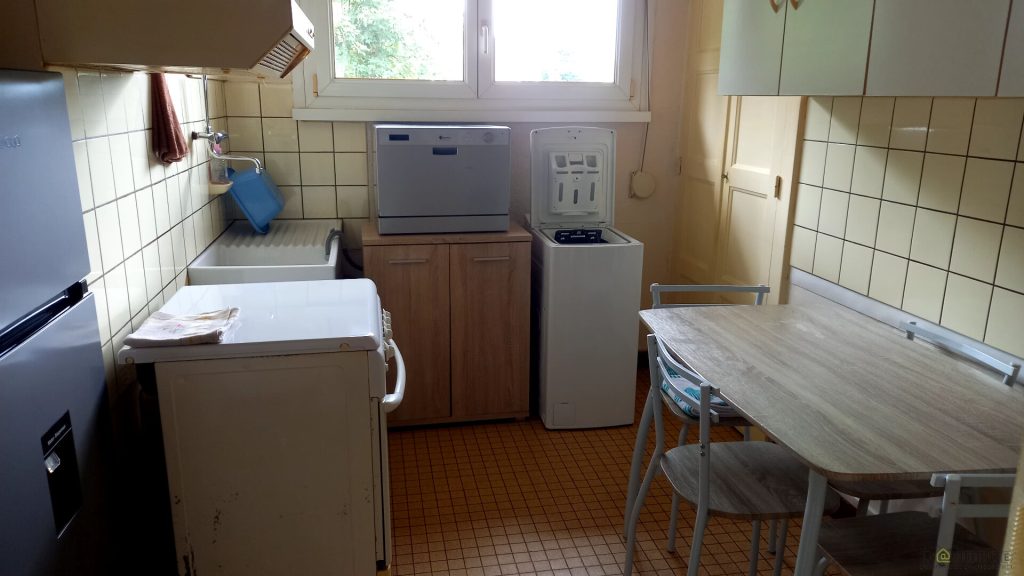 A SAINT-DIÉ, proche école, collège et centre ville, appartement T2, d’environ 44 m2, au 2ème étage d’une copropriété de 3 appartements avec : entrée, cuisine, salon/séjour, 1 chambre, salle d’eau, wc séparé, cave et grenier. Espace vert en commun.
