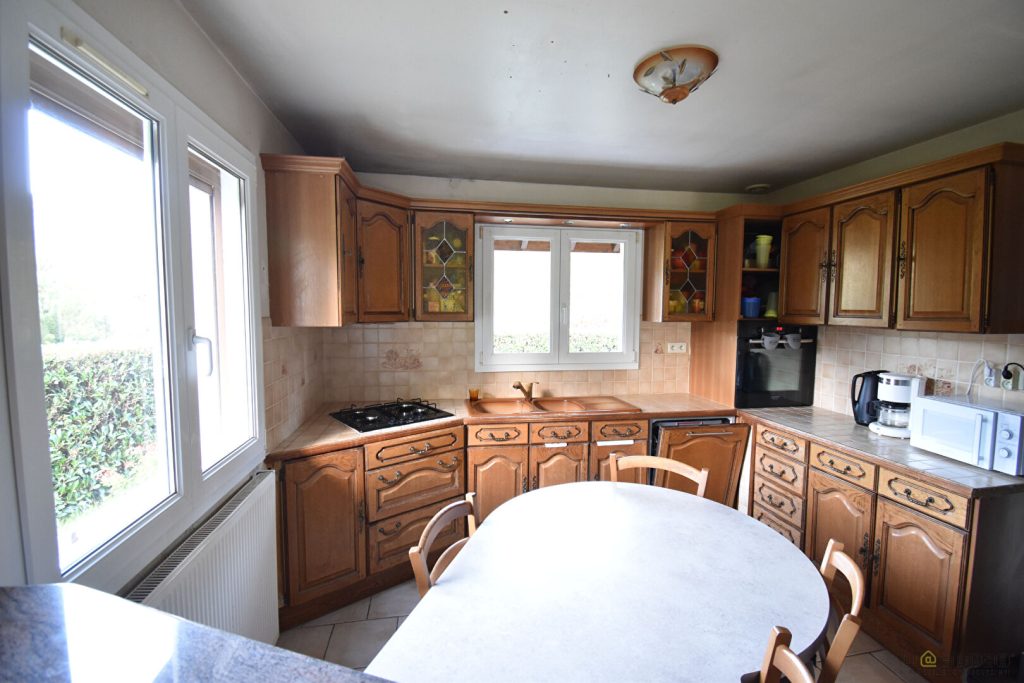– Au rez-de-chaussée : une entrée, une cuisine équipée ouverte sur le salon-séjour avec cheminée et accès direct sur la terrasse. Partie nuit avec un couloir desservant une salle d’eau, 2 chambres ainsi que des WC.