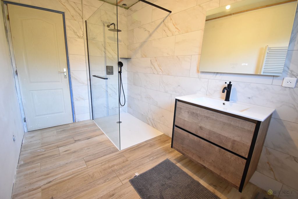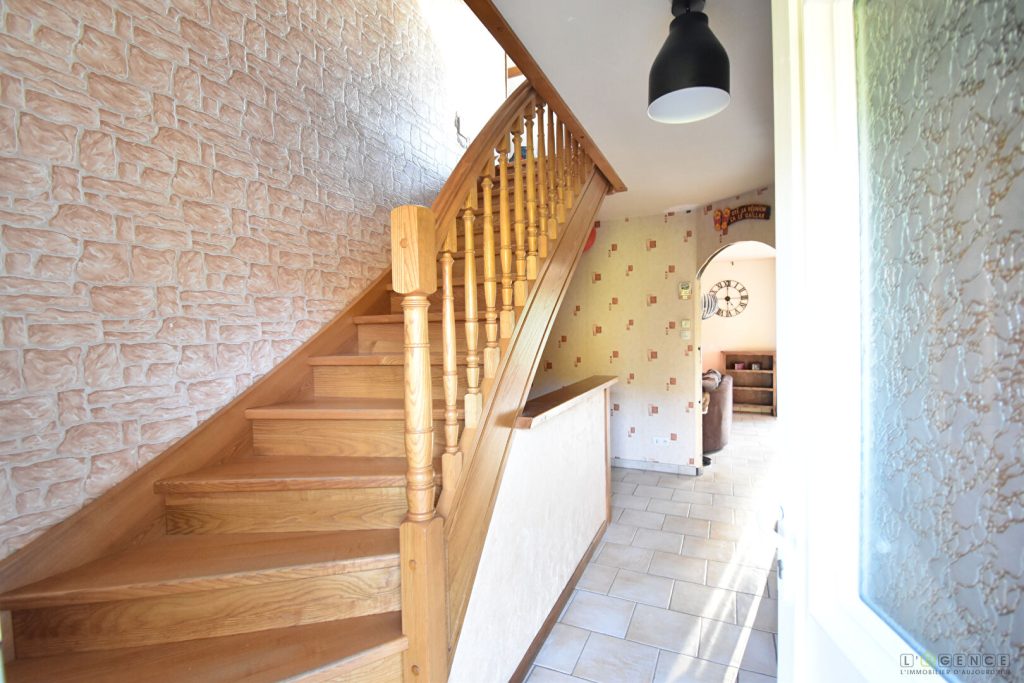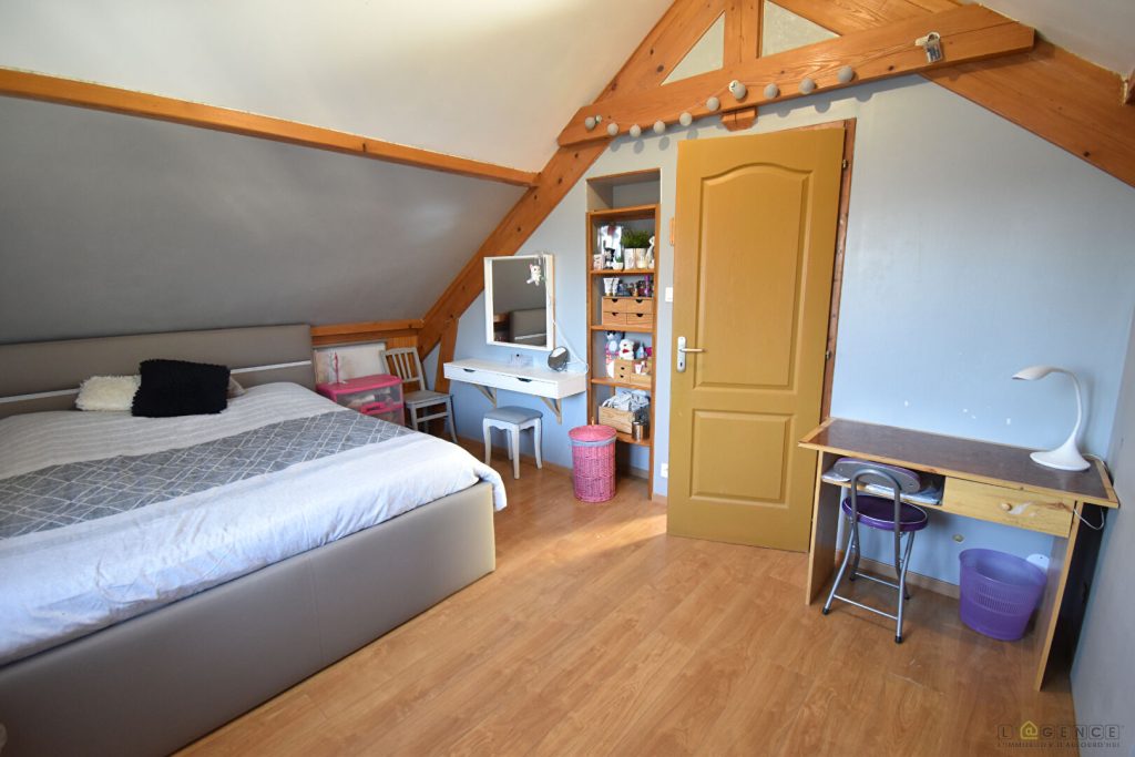 – A l’étage nous retrouvons un palier desservant 2 chambres, une salle d’eau avec WC ainsi qu’un accès au grenier.