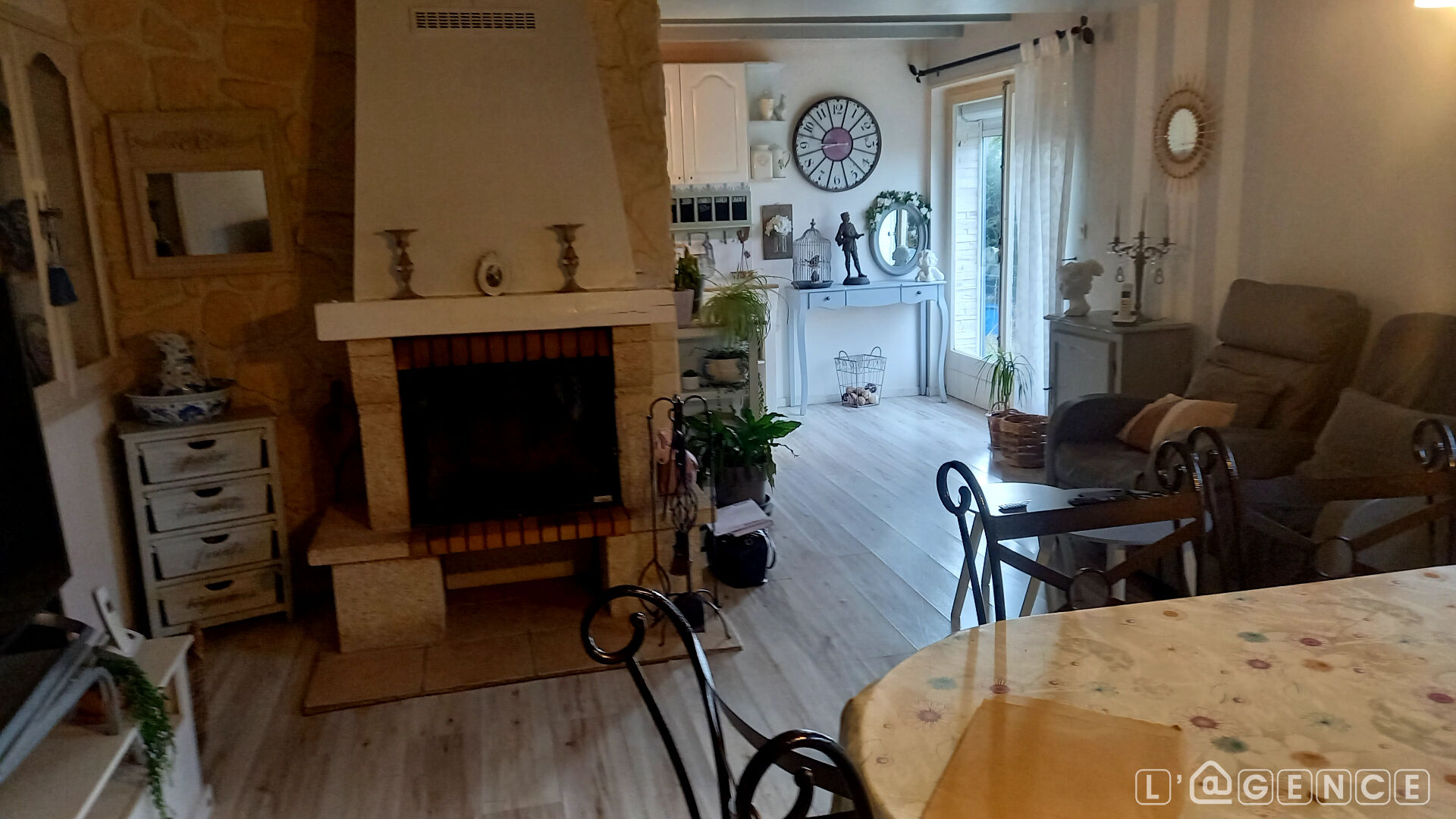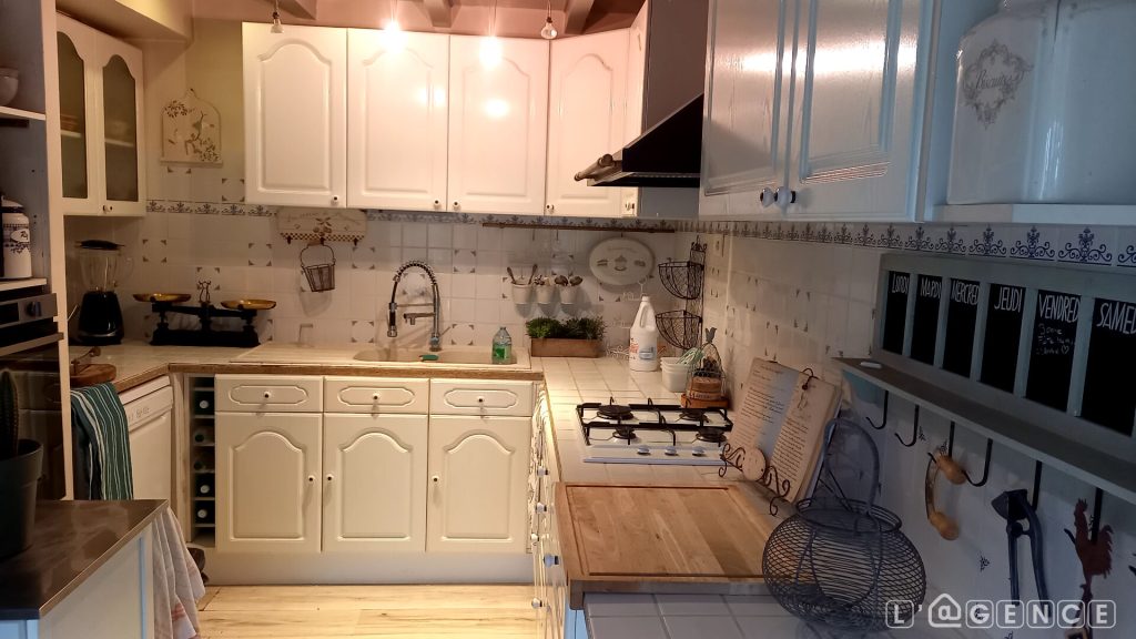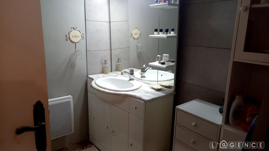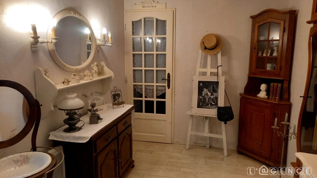 Cave. Chauffage électrique, cheminée insert bois, pompe à chaleur à l’étage.