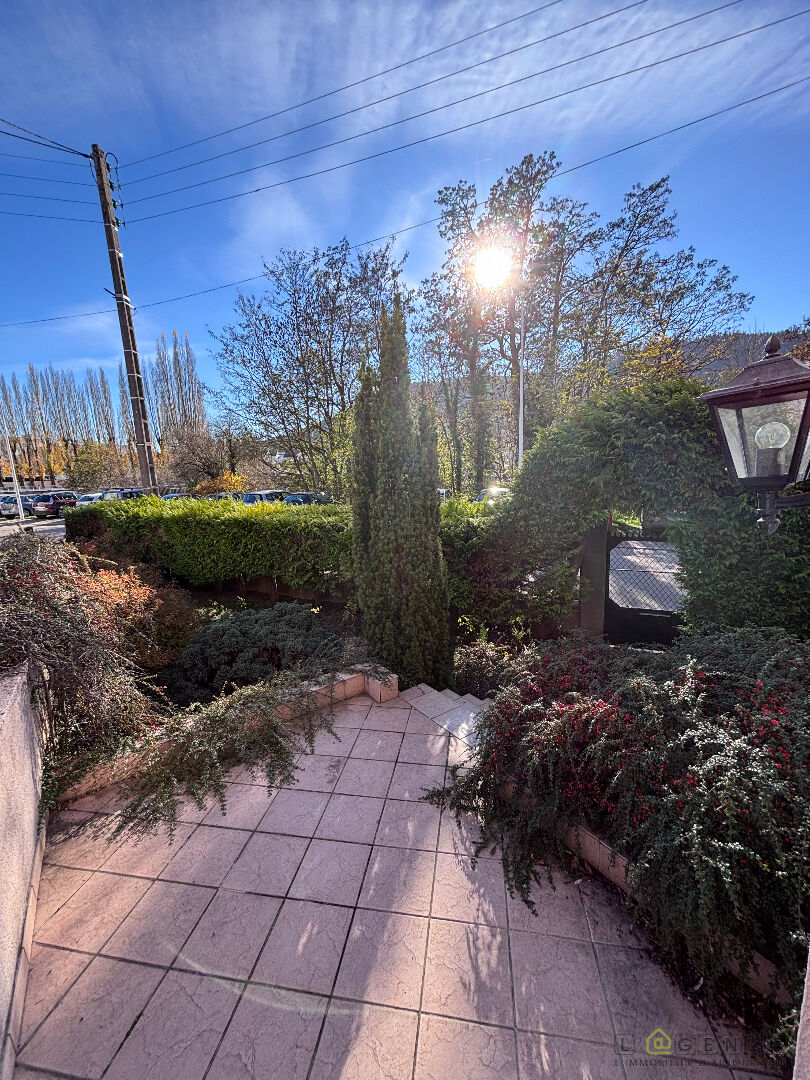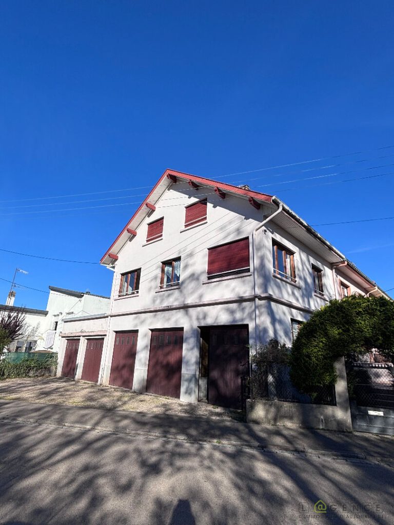 Pavillon de 90 m2 habitables avec terrasse de 30 m2, 5 garages loués et un petit jardinet.