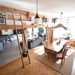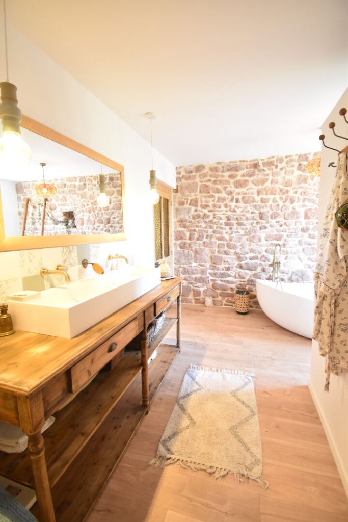 – A l’étage : 2 chambres, une salle de bains avec baignoire et douche, ainsi qu’une mezzanine faisant office de bureau.